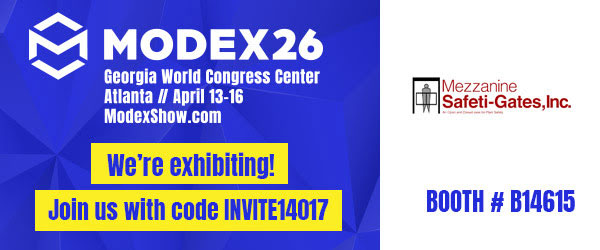 “With the rise of unmanned vehicles in material handling facilities, employees face risks at the ground level,” said Aaron Conway, Mezzanine Safeti-Gates, Inc president. “While our safety gates were originally designed for fall protection, we have seen more need for our safety systems on the ground level to separate stationary work zones from traffic flow. And the dual-gate systems work really well on the ground level, always ensuring a barrier is in place to protect employees. Our safety gates prevent employees from vehicle strikes on the ground level, and falls on elevated levels.”