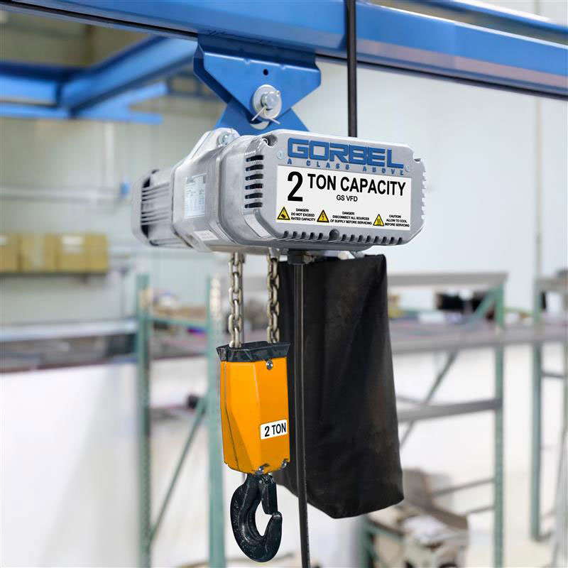 Gorbel’s new GS VFD variable-frequency drive electric chain hoist features built-in thermal monitoring and enhanced braking that contribute to overall system safety and efficiency. Source: Gorbel Inc.