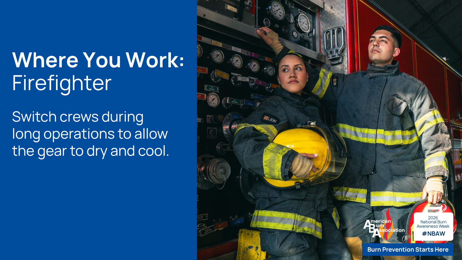 National Burn Awareness Week (NBAW) is an initiative of the American Burn Association (ABA) dedicated to raising awareness about burn injury prevention and safety. Observed during the first full week of February, the campaign unites healthcare professionals, burn centers, fire and life safety educators, employers, and community partners nationwide to promote practical, evidence-based burn prevention strategies. This year’s theme, “Burn Prevention Where You Live, Work, and Play - Preventing Burns in the Workplace,” focuses on reducing risks across occupational environments, including healthcare facilities, commercial kitchens, laboratories, and manufacturing settings. Click through the slideshow to review ABA’s burn prevention tips for specific workplaces, including construction, transportation, agriculture, maintenance, firefighting, military, restaurants, and offices. Please note some occupations feature multiple slides. Burn injuries are often preventable According to the 2021 Centers for Disease Control and Prevention (CDC) National Hospital Ambulatory Medical Care Survey, an estimated 398,000 people received medical care for burn-related injuries annually in the United States. An additional 252,000 received care for contact burns from hot objects or substances. Many of these injuries involve contact with hot objects, scalds, exposure to flame, and workplace hazards. While survival rates continue to improve, the ABA said burn survivors often face long-term physical and emotional challenges, reinforcing the importance of prevention education. “Burn injuries are often preventable,” said Clifford Sheckter, ABA burn prevention committee chair. “National Burn Awareness Week provides an opportunity to elevate workplace safety education, highlight proven prevention strategies, and engage communities in protecting workers and families alike.” Workplace burn prevention tips Simple actions can significantly reduce burn risk on the job: Heat and Equipment Safety: Use protective equipment and wear PPE when working with hot surfaces, machinery, or open flames.  Chemical Handling: Follow proper storage, labeling, and handling protocols for hazardous chemicals and materials.  Electrical Awareness: Inspect electrical cords and equipment regularly and avoid overloading outlets.  Training and Preparedness: Participate in workplace safety training and ensure emergency response plans are visible and accessible. The ABA encourages organizations and individuals to participate throughout the week by sharing burn prevention resources and educational content using #NBAW and #ameriburn on social media. Posts tagged #ameriburn may be featured on the American Burn Association homepage's social feed, expanding the reach of prevention messages nationwide. The ABA Burn Prevention Committee has developed free, downloadable materials to support outreach, including fact sheets, social media graphics, and co-branded educational tools. These resources are available to burn centers, healthcare organizations, employers, educators, and community groups.