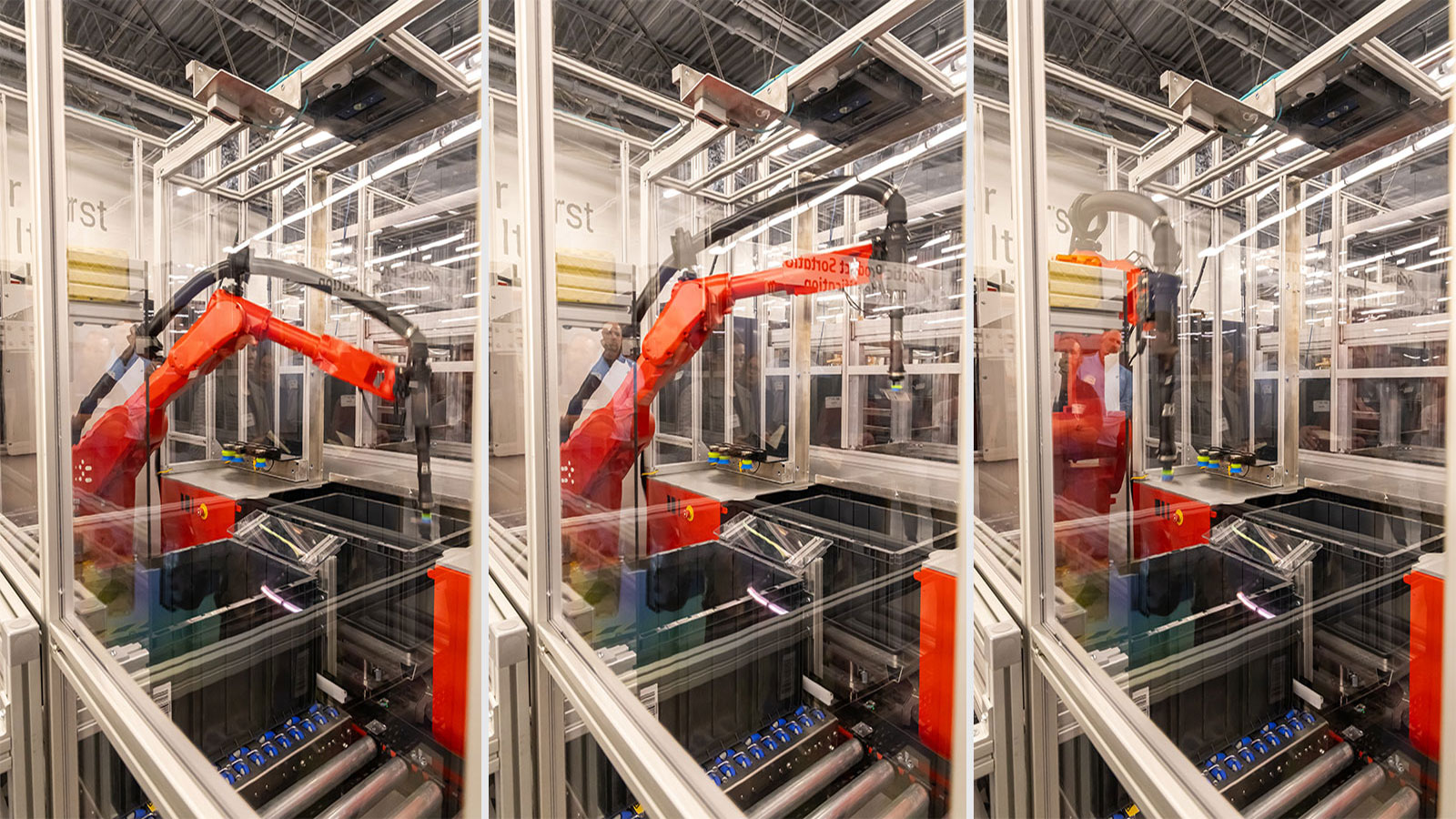 In this pick sequence, CarouselAI picks an item from a bin presented from an AutoStore ASRS and places it into a second bin.