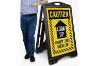February 20, 2026 · The Caution - Look Up, Power Lines Overhead A-Frame Portable Sidewalk Sign from MySafetySign is resists weather, water, chemicals, and cleaners, and is offered with reflective panels.